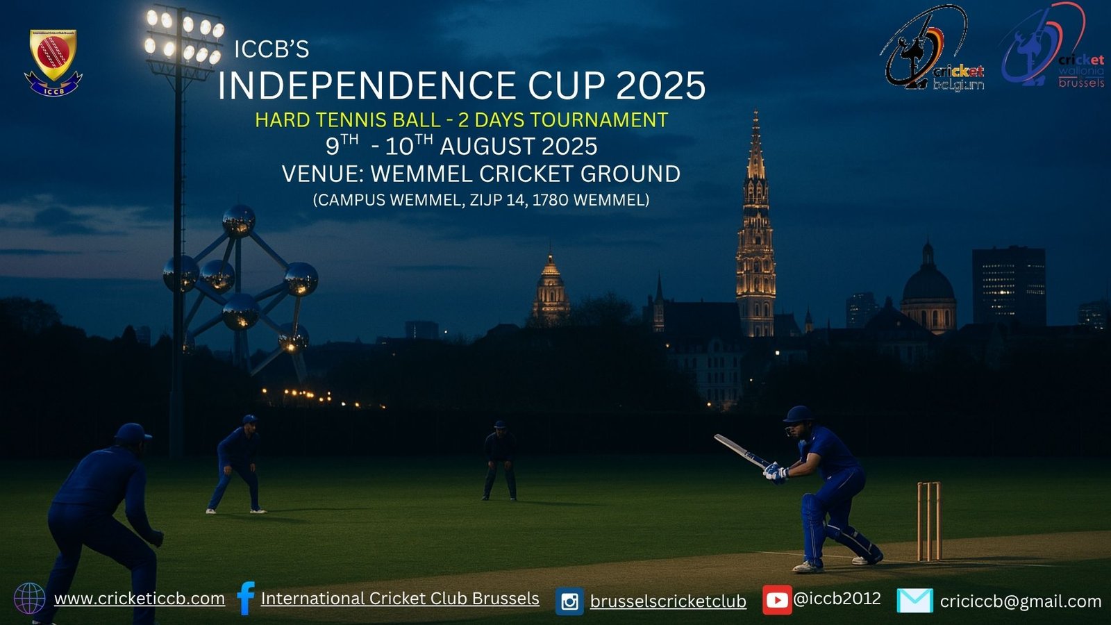 • About Us The International Cricket Club of Brussels is a vibrant community of cricket enthusiasts based in the heart of Brussels. Our club is dedicated to promoting the game of cricket while providing a friendly and inclusive environment for players of all skill levels. Our colors – royal blue, yellow, and a hint of red